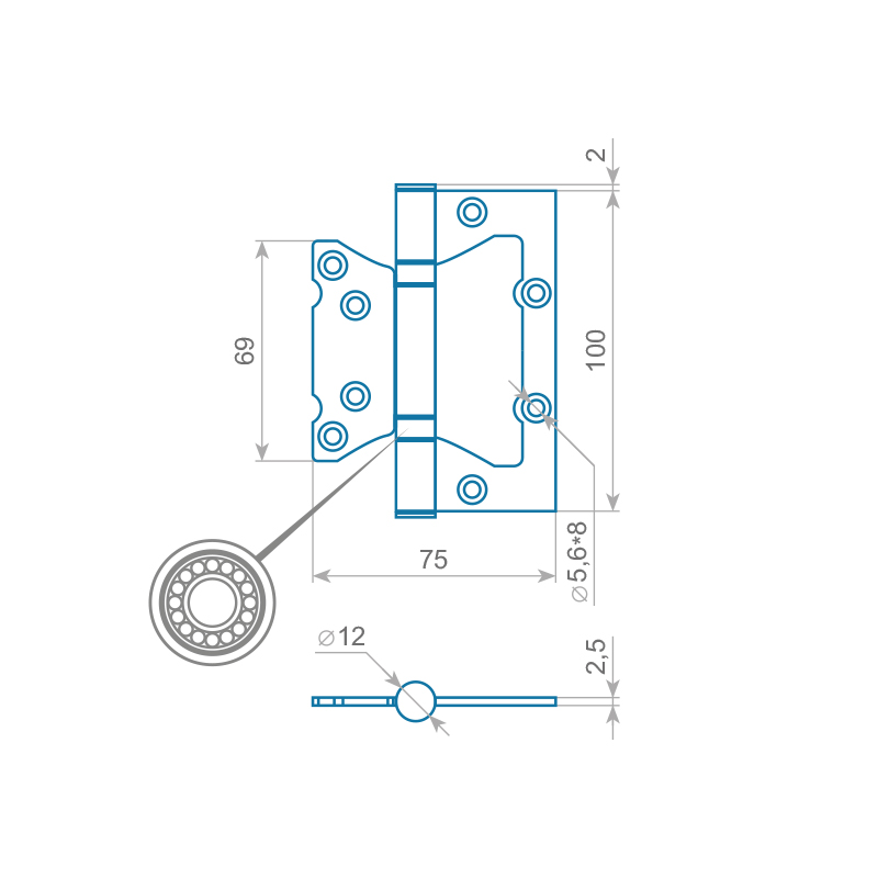 Петля без врезки ITAROS 100х75х2,5 старая медь АС