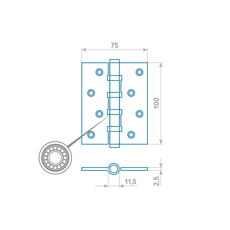 Петля врезная универсальная ITAROS100х75х2.5 черная BLACK